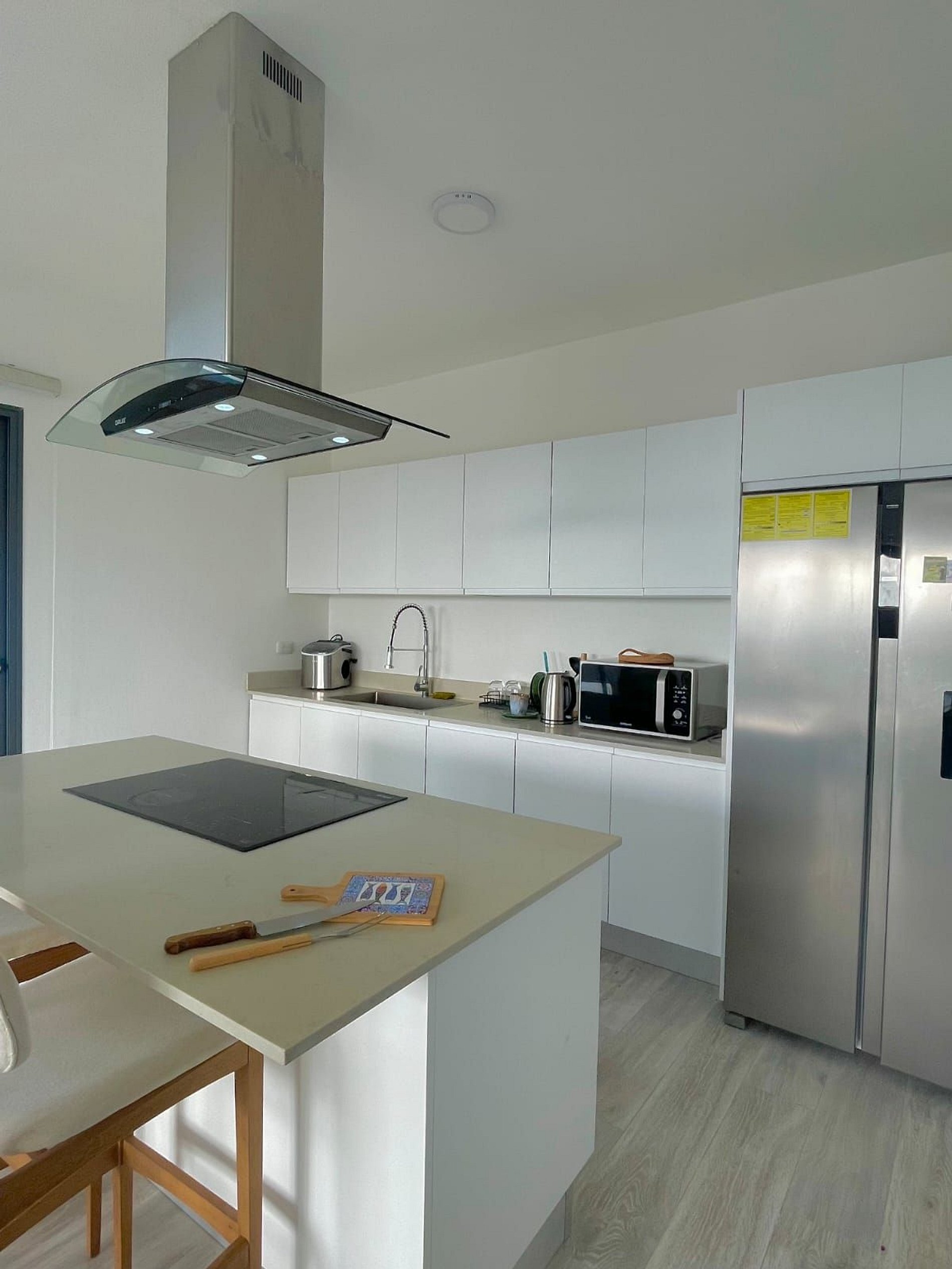 Espacios amplios: sala de estar, comedor, cocina completamente equipada, dormitorios con aire acondicionado.