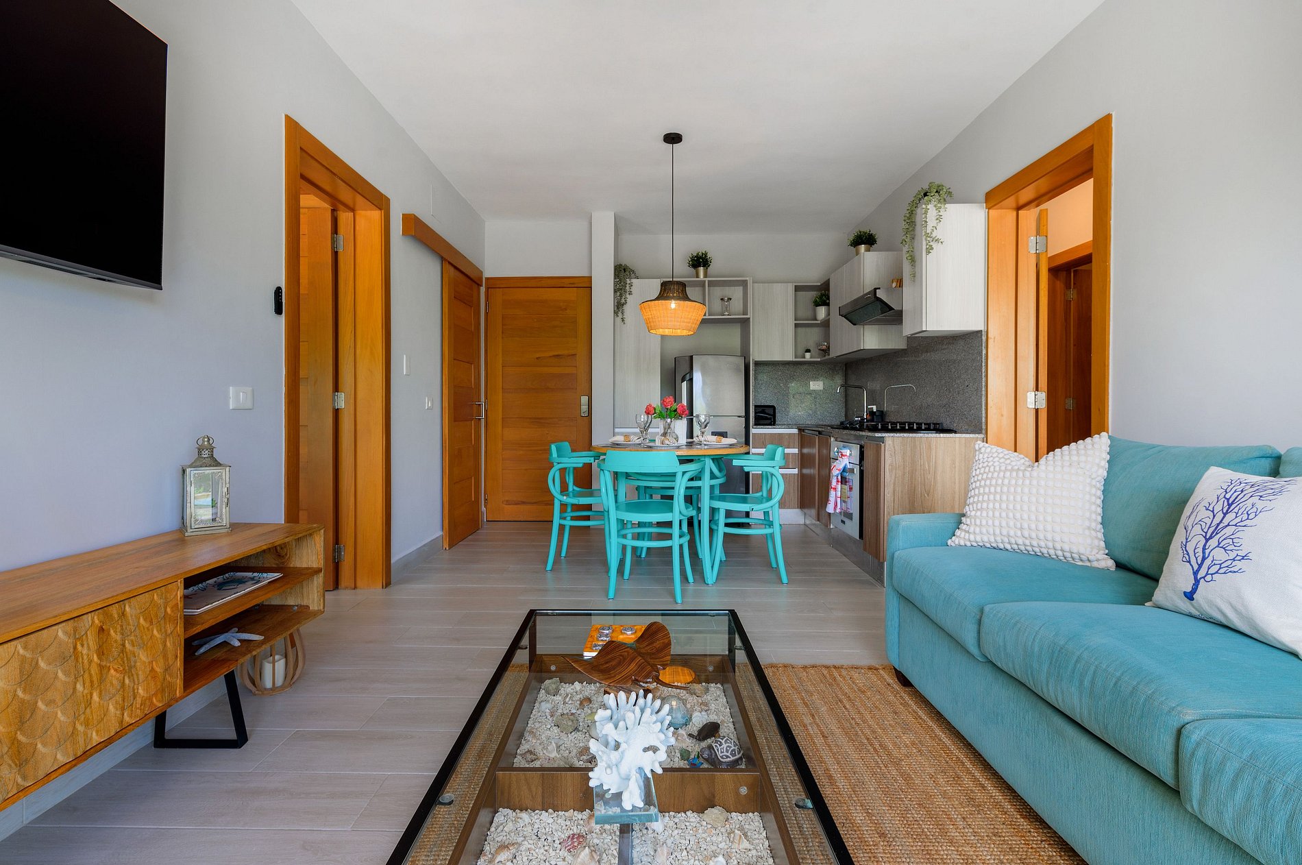EL COMPLEJO DE APARTAMENTOS: Vibe Residences Dominicus es una propiedad elegante y moderna que se destaca del resto de la zona. Cuenta con espacios abiertos y luminosos, grandes ventanales y un hermoso diseño paisajístico. La ubicación es aislada pero convenientemente cerca de la playa Dominicus y de varias atracciones, como restaurantes, discotecas y spas.
