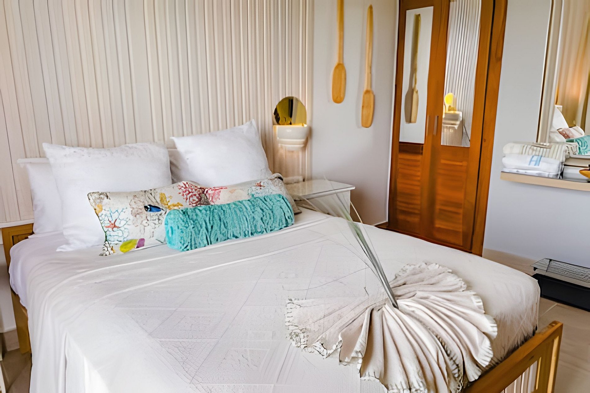 El segundo dormitorio cuenta con una cama tamaño queen, TV inteligente, aire acondicionado y una pequeña cocina con una pequeña nevera y cafetera. Además, cuenta con un baño privado para mayor privacidad y comodidad.